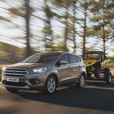 Escape Titanium has a maximum towing capacity of 3,500 lbs. when equipped with the 2.0L EcoBoost® Class II Trailer Tow Package. Trailer sway control technology and an auxiliary transmission oil cooler are included in the package when equipped with the 2.0L EcoBoost engine. When trailer sway is detected, the system automatically takes measures, such as applying precise braking or reduced engine torque, to help keep both the vehicle and the trailer under control.