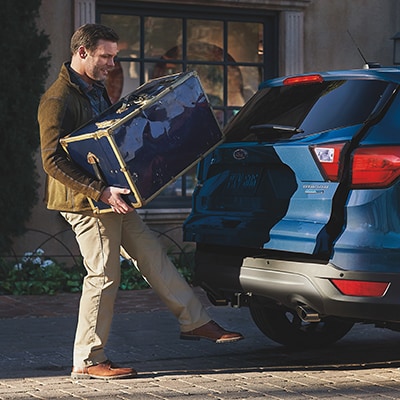 Thanks to the available hands-free, foot-activated liftgate, there's no need to fumble for keys. Its hands-free operation is especially helpful when your arms are full of items like grocery bags. With the Intelligent Access key in your pocket or purse, kick your foot under the bumper and the liftgate opens. You can also adjust the liftgate height, helpful for lower overhangs. Standard on Titanium model. 2018 Escape shown.
