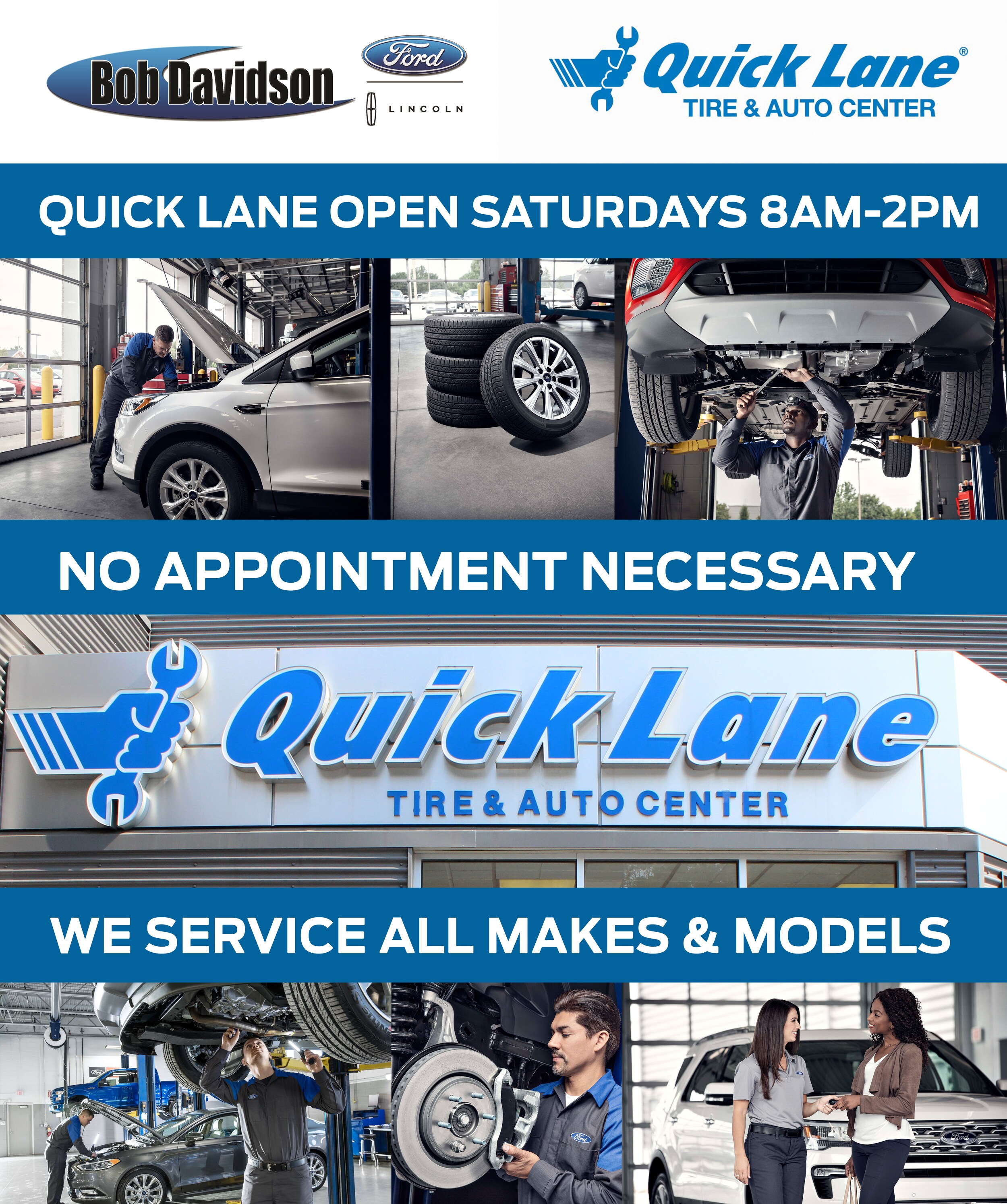 Bob Davidson Ford Lincoln has added Saturday Quick Lane Service hours from 8am-2pm for your convenience.